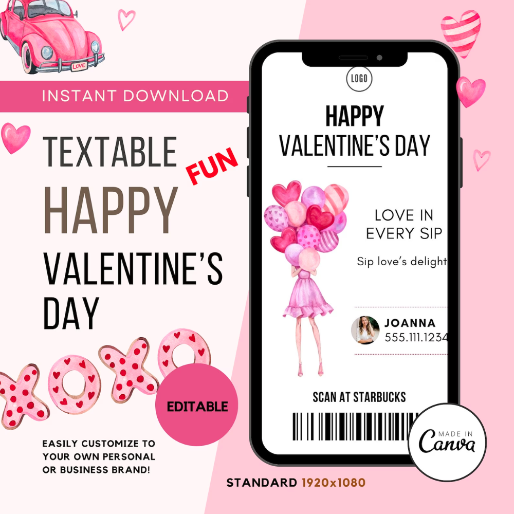 Coffee Textable Gift Card | Fun Coffee Valentine's Day Editable Digital Card | Love Marketing | Starbucks Coffe Marketing Text Message SMS