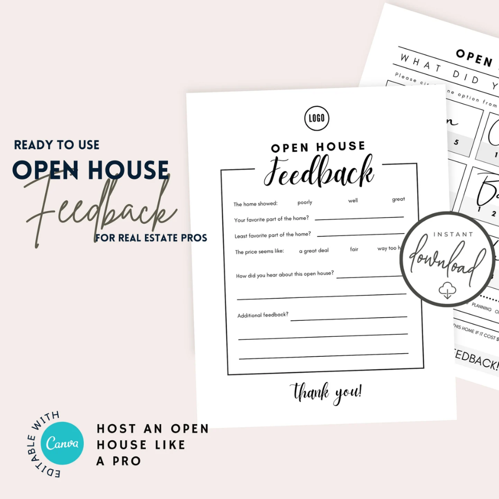 Open House Real Estate Feedback | Print & Go | Instant Download | Editable CANVA Real Estate Template | Open House Printable | PDF Marketing