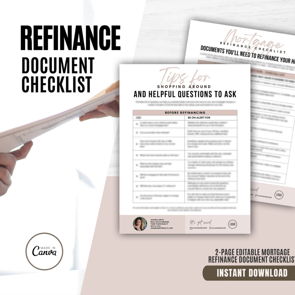 Editable Mortgage Refinance Document Checklist | Mortgage Broker Marketing | Mortgage Templates | Editable CANVA | Instant Download | REFI