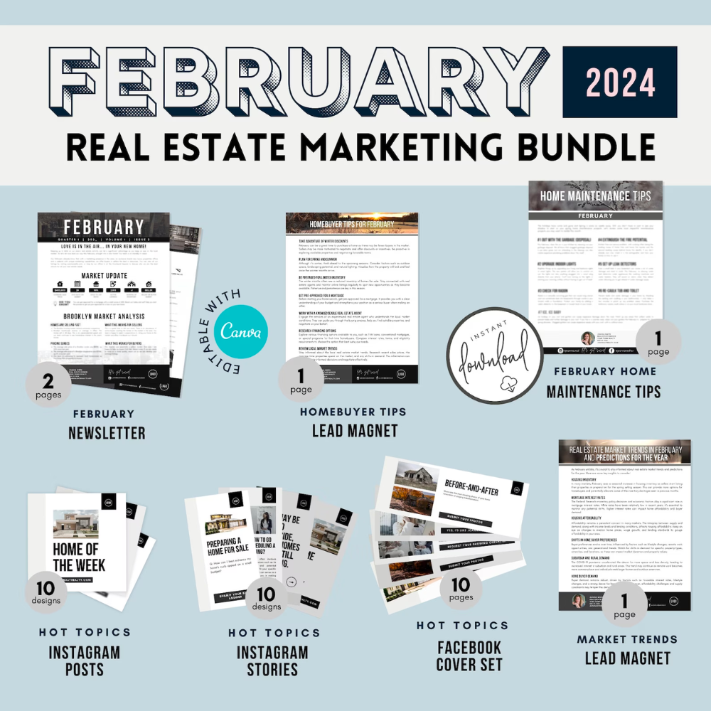 The Ultimate FEBRUARY Marketing Kit for Real Estate | Realtor Marketing Pack CANVA Templates - Bestseller 2024 | Social Media Lead Magnets | Strategic February Marketing Bundle for Realtors: Elevate Your Social Media with Powerful Lead Magnet Templates